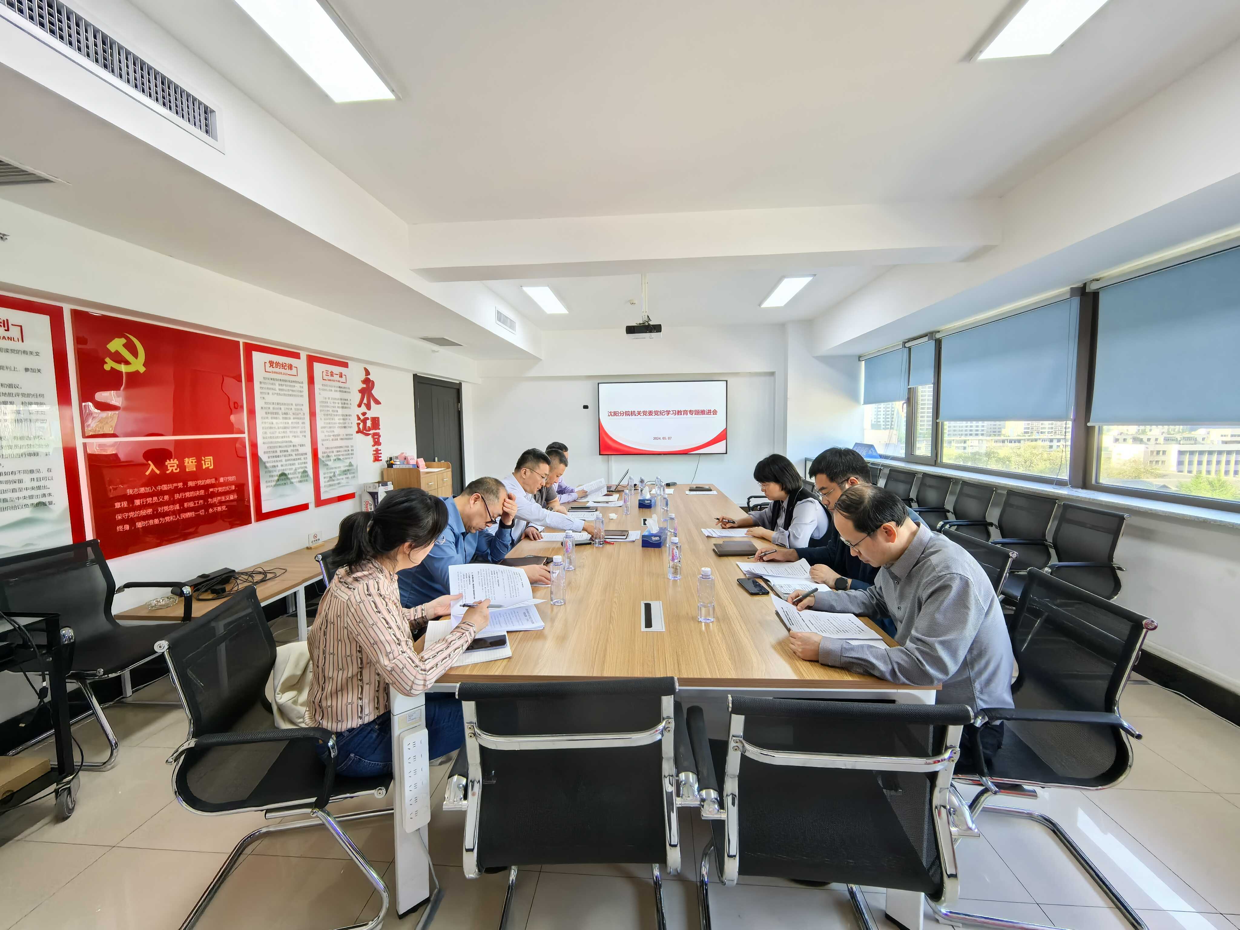 為進一步推動沈陽分院機關(guān)黨委深入開展黨紀學習教育工作,5月7日,沈陽分院機關(guān)黨委召開黨紀學習教育專題推進會。沈陽分院機關(guān)黨委書記楊宏,機關(guān)黨委委員、各黨(總)支部書記參加會議。