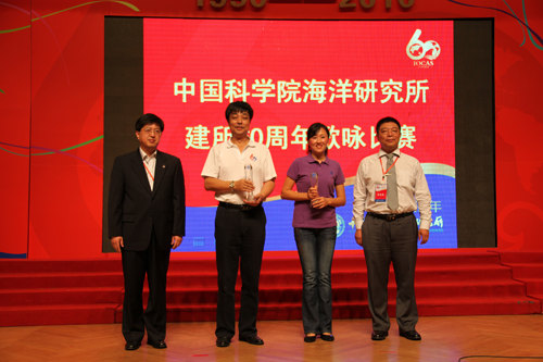 演出結(jié)束,所領(lǐng)導(dǎo)為獲獎(jiǎng)參賽隊(duì)頒發(fā)了獎(jiǎng)杯。全所13支演唱隊(duì)伍為這次高水平的合唱演出進(jìn)行了精心的準(zhǔn)備,在此,向每位演出者,向六十年來(lái)為海洋所奉獻(xiàn)著自己的職工致以深深的敬意,也祝愿我們海洋所的明天更加燦爛美好!