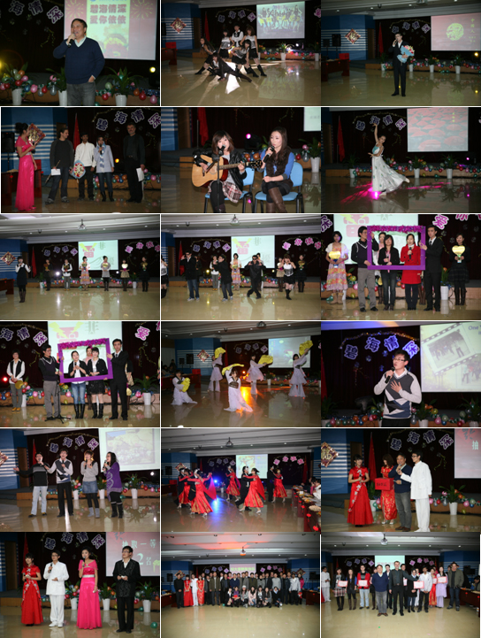 主持人風(fēng)趣健談、妙語連珠,帶動了全場的喜慶氣氛。開場熱舞《光芒》首先博得了大家的喝彩,接著黃杰帶來了現(xiàn)場版的《中國人》。vinu等外國留學(xué)生隨后給我們帶來《silent night》等一組異域風(fēng)情的歌曲,法語、英語、印度語交相輝映,現(xiàn)場與觀眾的互動也歡笑不斷。吉他彈唱給我們娓娓敘來旅行的意義,《雀之靈》為我們詮釋了孔雀的幽靜美麗。舞蹈《床前明月光》更是詩意盎然,柔美不失力度,五彩燈下帶我們回味盛唐。話劇《非雷勿擾》笑點(diǎn)不斷,讓人捧腹不已,08級碩士班的歌曲串燒更是祝福與回憶一同送出,欣賞的同時讓人感動不已。最后在一片幽靜的燈光中姍姍登場的是帶著假面的帥哥美女表演了交誼舞《華爾茲》,大家在祥和的氣氛中共同欣賞精彩紛呈的演出節(jié)目。晚會中還穿插了許多互動的游戲及豐富的抽獎活動。