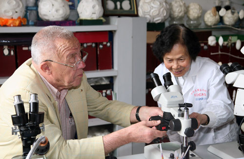 瓦爾特. 馮.孟軻夫(Walter v.Mensenkampff)先生專程趕到鄭守儀院士辦公室,向鄭守儀院士贈(zèng)送了一套顯微鏡專用燈。鄭守儀院士對(duì)瓦爾特. 馮.孟軻夫先生表示感謝,并熱情的邀請(qǐng)他參觀她的有孔蟲實(shí)驗(yàn)室,向他贈(zèng)送了有孔蟲小紀(jì)念品表示感謝。