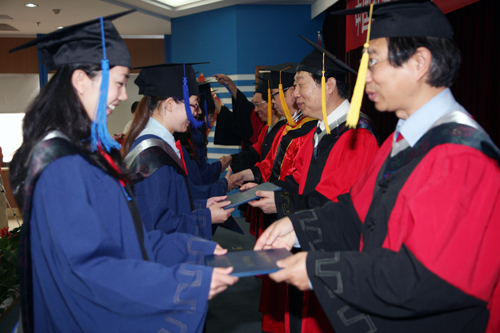 黨委書記王啟堯主持畢業(yè)典禮,首先宣讀了2012年度通過畢業(yè)答辯的學(xué)生名單,并向畢業(yè)生表示祝賀。校長孫松和研究生導(dǎo)師代表共同為畢業(yè)生頒發(fā)學(xué)位證書、扶流蘇。
