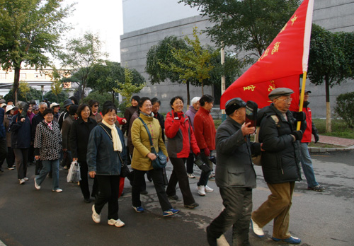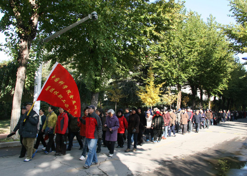 在浩浩蕩蕩的行走隊(duì)伍中,無論青絲還是銀發(fā),無論矯健還是蹣跚,每個(gè)人都興高采烈,精神抖擻地展示著金屬所離退休職工晚年的幸福和安康。