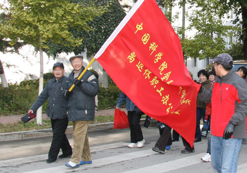 10月23日,農(nóng)歷九月初九,是我國的傳統(tǒng)節(jié)日—重陽節(jié),也是法定的“中國老年節(jié)”。為了慶祝這個(gè)傳統(tǒng)節(jié)日,也為了喜迎黨的十八大召開,在所工會的支持下,金屬所離退辦舉行了“慶重陽節(jié)健身走”活動。87歲的在金屬所建所初期就入所工作的張子青自告奮勇?lián)?dāng)旗手,77歲的優(yōu)秀共產(chǎn)黨員孫培崗自告奮勇?lián)?dāng)護(hù)旗手,290余名離退休職工圍繞金屬所文化路園區(qū)健身走了一圈?! ?nbsp;