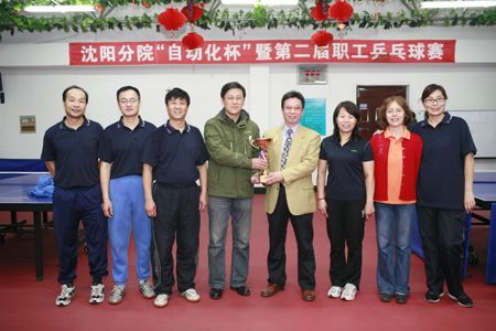 經(jīng)過男女單項(xiàng)共49場(chǎng)比賽,沈陽自動(dòng)化研究所7名隊(duì)員全部獲得積分,有6名隊(duì)員打入男女單項(xiàng)前八名,總成績(jī)列各單位之首,獲得團(tuán)體冠軍。金屬所、大連化物所分獲二三名。沈陽分院機(jī)關(guān)工會(huì)主席周峰宣布了比賽成績(jī),沈陽分院院長(zhǎng)助理王瑞芬、沈陽自動(dòng)化所副所長(zhǎng)梁波、金屬所副所長(zhǎng)張哲峰分別為獲得團(tuán)體一二三名的球隊(duì)頒獎(jiǎng)。