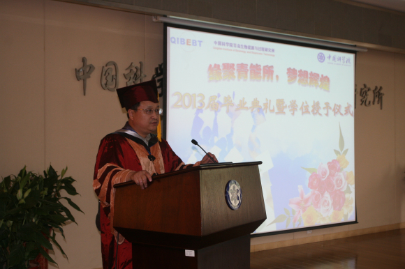 6月17日,中國科學院青島生物能源與過程研究所2013年度研究生畢業(yè)典禮暨學位授予儀式隆重舉行。研究所學位會委員會主席、所長劉會洲、黨委書記隋紅建、學位委員會副主席、副所長彭輝、呂雪峰等出席活動。