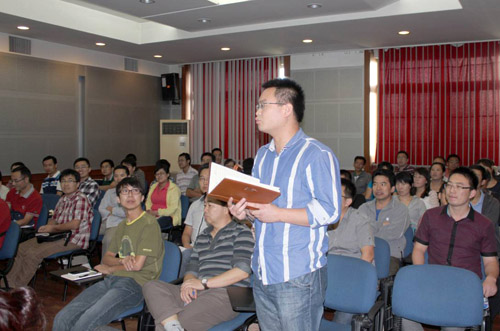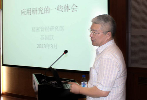 報(bào)告中,蘇國(guó)躍研究員首先介紹了精密管材研究部的發(fā)展歷史及概況,并從自身實(shí)際工作出發(fā)與大家分享了對(duì)應(yīng)用研究的理解。蘇國(guó)躍研究員指出,扎實(shí)的知識(shí)基礎(chǔ)和清晰明確的目標(biāo)是做好應(yīng)用研究的前提,從事應(yīng)用研究的人應(yīng)格外關(guān)注與自身研究?jī)?nèi)容相關(guān)的知識(shí),并有重點(diǎn)地對(duì)相關(guān)知識(shí)進(jìn)行理解和掌握。同時(shí),蘇國(guó)躍研究員強(qiáng)調(diào),從事應(yīng)用研究的科研人員要具備良好的自我管理能力,包括管理好自己的知識(shí)與行為。報(bào)告過(guò)程中,蘇國(guó)躍研究員闡述了對(duì)“知識(shí)”的觀點(diǎn)和看法,并認(rèn)為“高效的學(xué)習(xí)”是科研過(guò)程中的重要環(huán)節(jié)。蘇國(guó)躍研究員以詼諧幽默的方式闡述了對(duì)“職業(yè)”、“研究工作”和“教育”的看法,并就怎樣處理好職業(yè)和愛好之間的關(guān)系及如何遵守職業(yè)道德提出了自己的意見。報(bào)告最后,蘇國(guó)躍研究員建議所內(nèi)青年職工在科研過(guò)程中應(yīng)該心胸寬闊一點(diǎn)、職業(yè)感強(qiáng)烈一點(diǎn),重視時(shí)間的積累和機(jī)會(huì)的把握。蘇國(guó)躍研究員精辟的總結(jié)、新穎的觀點(diǎn)贏得了現(xiàn)場(chǎng)觀眾的陣陣掌聲。在報(bào)告后的交流環(huán)節(jié),現(xiàn)場(chǎng)觀眾踴躍提問(wèn),從對(duì)應(yīng)用研究的理解到與項(xiàng)目客戶的實(shí)際溝通,從精密管材研究部的發(fā)展歷程到敢為天下先的研究理念,蘇國(guó)躍研究員鞭辟入里而又不失風(fēng)趣幽默的解答,不時(shí)博得陣陣掌聲,更使得參與者在獲得答案的同時(shí)受到了啟發(fā)。