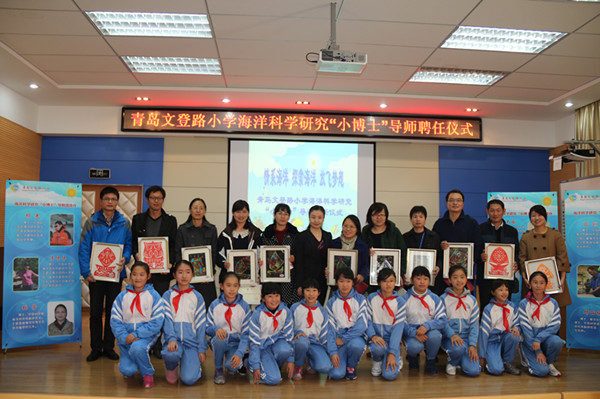 11月25日,“情系海洋 探索海洋 放飛夢想”青島文登路小學(xué)海洋科學(xué)研究“小博士”導(dǎo)師聘任儀式舉行,文登路小學(xué)朱雪梅校長為中國科學(xué)院海洋研究所11位青年科研人員頒發(fā)了聘書。