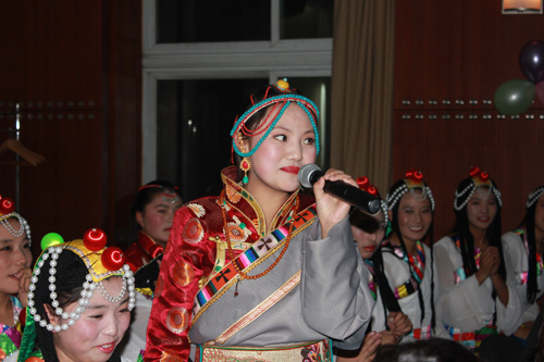 西藏班的小伙伴兒們則帶來了具有濃郁民族特色的歌舞。一曲高亢的《瑪吉阿媽》和藏族原生態(tài)的舞蹈《阿媽的酥油燈》,則展現(xiàn)了藏族同胞能歌善舞的藝術(shù)天賦,讓獨唱變成了大合唱,臺上臺下互動交融,高潮迭起。晚會的最后,雙方的老師在同學(xué)們熱烈的掌聲中即興表演了歌舞。一臺精彩、火爆的晚會使遠離親人的藏族小伙伴兒們感受到節(jié)日的喜慶氣氛,也讓金屬所的師生們從藏族學(xué)生純真、友愛的表現(xiàn)中得到了心靈的凈化。