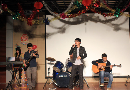 晚會上,金屬所研究生部的劉敏主任對藏族師生的到來表示熱烈歡迎,并向大家獻上美好的新年祝福。藏族班的同學(xué)用歌聲般的藏語向金屬所全體師生祝福新年,并熱情地為金屬所的老師和同學(xué)代表獻上了潔白的哈達。晚會在研究生樂隊的激情演奏中拉開帷幕。