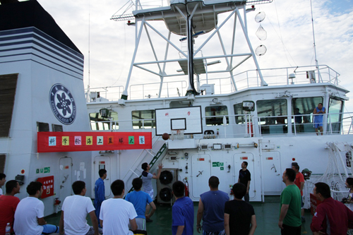 “科學(xué)”號克服海上條件限制,在船甲板的有限空間上整理出籃球場地并自制了簡易籃球架,組織全體船隊員開展了一次別開生面的投籃比賽。比賽分為定點投籃和限時投籃兩個項目,全體船員、科考隊員在保證安全和工作的前提下踴躍參與,簡陋的設(shè)施與場地阻擋不了參賽隊員的熱情,充分展示了海洋所人不畏艱險、積極樂觀的科考精神,進(jìn)一步增進(jìn)了船隊員間的友誼,為順利完成科考任務(wù)營造了良好的文化氛圍。