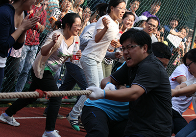 運(yùn)動(dòng)會(huì)共設(shè)置了動(dòng)力火車、步調(diào)一致、中國(guó)心、酷跑接力、托球跑、扭轉(zhuǎn)乾坤、財(cái)源滾滾、筆畫藍(lán)圖和拔河共計(jì)9個(gè)項(xiàng)目。共有來(lái)自研究室、管理及支撐部門的16支代表隊(duì)參加了比賽。三個(gè)多小時(shí)的活動(dòng)中,歡笑聲、加油吶喊聲不斷,整個(gè)比賽過程緊張激烈而又趣味橫生,令人眼花繚亂的比賽用具和新穎的比賽形式深深吸引了廣大職工和研究生,共有1120余人興致盎然地參加了比賽。