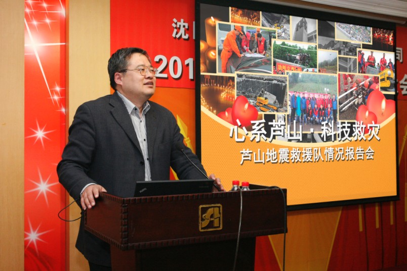 在此次救援工作中擔任組長的李斌首先作報告。李斌詳細介紹了救援隊參與救援工作的總體情況,以時間順序回顧了從4月20日地震發(fā)生后13人救援隊集結到28日返回沈陽的全過程。他還談到蘆山地震救援工作的體會,以及對于廢墟可變形搜救機器人的宏觀改進建議。作為本次救援行動臨時黨小組負責人,李斌表示,全體隊員在行動中體現了“獻身、求實、協作、創(chuàng)新”的沈陽自動化所精神。他們不畏懼余震和滾石塌方,保持團結一心,克服種種困難,實現了與國家救援隊以及其他單位的配合。在地震災區(qū)現場不斷積累經驗,完善機器人系統,使得沈陽自動化所自主研發(fā)的高科技裝備在地震災區(qū)圓滿完成首次現場應用。