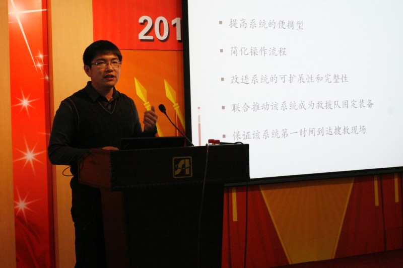 負責空中搜索探測機器人方面救援工作的齊俊桐緊接著作了題為《雅安,我們此刻在一起——飛行機器人團隊地震救援紀實》的報告。他在報告中介紹了空中搜索探測機器人的研制背景以及在本次蘆山地震發(fā)生后的快速響應,重點介紹了飛行機器人團隊的5名80后青年科研骨干在4天的救災任務中不斷嘗試探索飛行機器人在實戰(zhàn)中的應用,以及與國家地震救援隊隊員們從初步磨合到緊密配合協同工作的過程。在本次救援中4臺飛行機器人共排查了6個鄉(xiāng)鎮(zhèn),獲取了近50平方公里震區(qū)的空中信息,排查了高層危樓50余棟,大大提高了國家救援隊災后排查救援的工作效率,縮短了他們的工作時長,贏得了國家地震救援隊的信任并獲得高度評價。