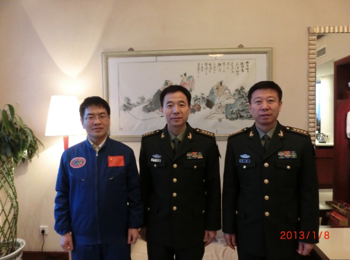 劉開周(左一)與山西籍英雄航天員景海鵬、劉旺共同獲評“2012感動山西十大人物”