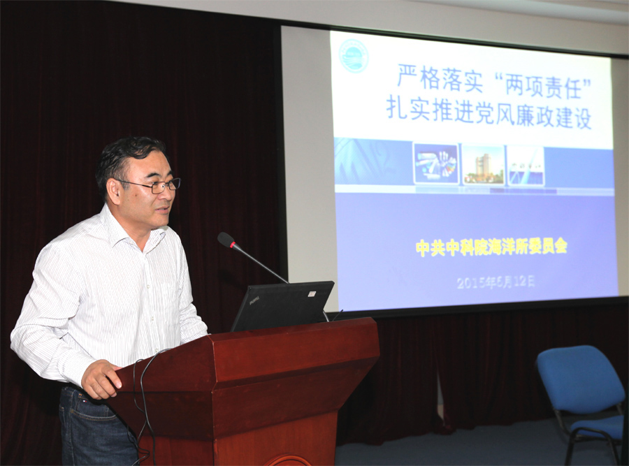 會議首先由楊紅生副書記代表黨紀委班子作了題為《嚴格落實“兩項責任”,扎實推進黨風廉政建設》的專題報告。報告全面?zhèn)鬟_了中央紀委駐中科院紀檢組組長李志剛在全院黨支部書記輪訓會議上的廉政報告精神,系統(tǒng)回顧了海洋研究所2014年廉政工作,對2015年黨風廉政工作進行了部署。近年來,海洋所嚴格落實黨委和紀委“兩項責任”,結(jié)合中心工作,圍繞作風建設長效機制和院巡視組反饋意見整改落實,從強化制度落實入手,以風險防控為切入點,重點加強懲防、內(nèi)控、隊伍、宣教和廉政文化五大體系建設,取得了較好成效,全年無違法違規(guī)違紀案件發(fā)生,促進了科研工作平穩(wěn)健康發(fā)展,