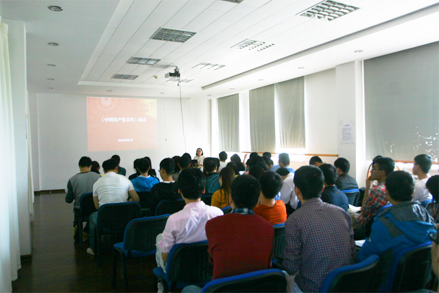為學(xué)習(xí)好新黨章內(nèi)容,研究生黨總支采取了提前分散學(xué)習(xí)和集中學(xué)習(xí)的方式。會(huì)前各個(gè)黨員同志自行閱讀黨章,會(huì)上劉佳為全體黨員做了黨章的詳細(xì)解讀。劉佳在報(bào)告中,首先對(duì)黨章做了簡要的介紹并回顧了黨章的歷史,講解了歷屆黨代會(huì)對(duì)黨章的修改,隨后重點(diǎn)講解了十八大對(duì)新黨章在各方面的修改,并帶領(lǐng)大家進(jìn)行新黨章除“總綱”外共十一章,五十三條的內(nèi)容導(dǎo)讀,一起掌握黨章的核心內(nèi)容,加深對(duì)黨章修訂重要意義的理解。最后,劉佳對(duì)“兩學(xué)一做”學(xué)習(xí)教育活動(dòng)的重要意義做了說明,她強(qiáng)調(diào)“兩學(xué)一做”學(xué)習(xí)教育是繼黨的群眾路線教育實(shí)踐活動(dòng)、“三嚴(yán)三實(shí)”專題教育之后開展的又一次黨內(nèi)教育活動(dòng),開展“兩學(xué)一做”學(xué)習(xí)教育進(jìn)一步解決黨員隊(duì)伍在各方面存在的問題,對(duì)每一位黨員都有長期的教育意義。