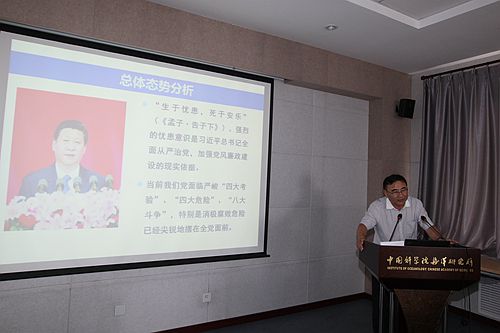 6月27日,管理第一黨支部、文獻與學會黨支部、研究生黨總支聯(lián)合開展“兩學一做”第二專題“學黨規(guī),嚴守政治紀律”學習活動。黨委副書記、副所長兼紀委書記楊紅生做了題為《學黨章、學黨規(guī)、守底線、爭先進》的專題黨課,三個黨支部共計40余人參加學習。