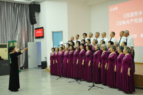 開場節(jié)目是由老同志藝術(shù)團(tuán)帶來的大合唱《四渡赤水出奇兵》、《沒有共產(chǎn)黨就沒有新中國》。在《四渡赤水出奇兵》的表演中,由趙敏、姜鳳岐領(lǐng)唱,張吉娜、張興達(dá)領(lǐng)頌。老同志用深情而激昂的歌聲,重現(xiàn)了長征途中,在敵我實力相差懸殊的情況下,中央紅軍在毛澤東指揮下,機(jī)動靈活,主動出擊,取得了以少勝多的勝利。在演唱《沒有共產(chǎn)黨就沒有新中國》的過程中,老同志全情投入,歌聲跌宕起伏,感人肺腑。