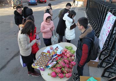 早晨7:30,活動在所正門前拉開帷幕。本次活動主要分為兩個環(huán)節(jié),首先是參與活動的女生現(xiàn)場關(guān)注DICP研究生會微信公眾號并留言寫下自己的心愿,便可領(lǐng)取研究生會精心準(zhǔn)備的愛心水果一份,200份“愛心”分批送出,送完為止;然后是在留言的女生中隨機(jī)抽取10名幸運女生送出豐厚的幸運大禮包,并將留言女生的心愿在微信公眾號中進(jìn)行推送,等待著有心的“他”來實現(xiàn)。