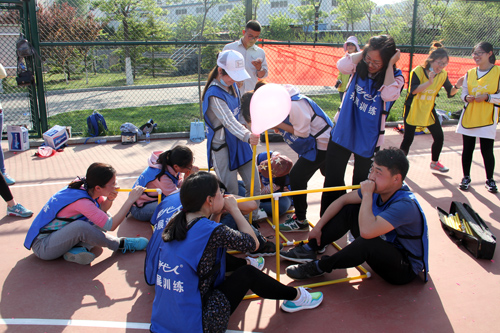 參加活動(dòng)的研究生們被隨機(jī)分成紅黃藍(lán)三隊(duì),在隊(duì)長(zhǎng)的帶領(lǐng)下,團(tuán)結(jié)一心、合作奮進(jìn),進(jìn)行了“袋鼠跳”、“呼吸的力量”和“激情119”等三項(xiàng)集體項(xiàng)目的挑戰(zhàn)。在教練的引導(dǎo)和隊(duì)友的鼓勵(lì)下,所有隊(duì)員均成功完成了挑戰(zhàn)項(xiàng)目。