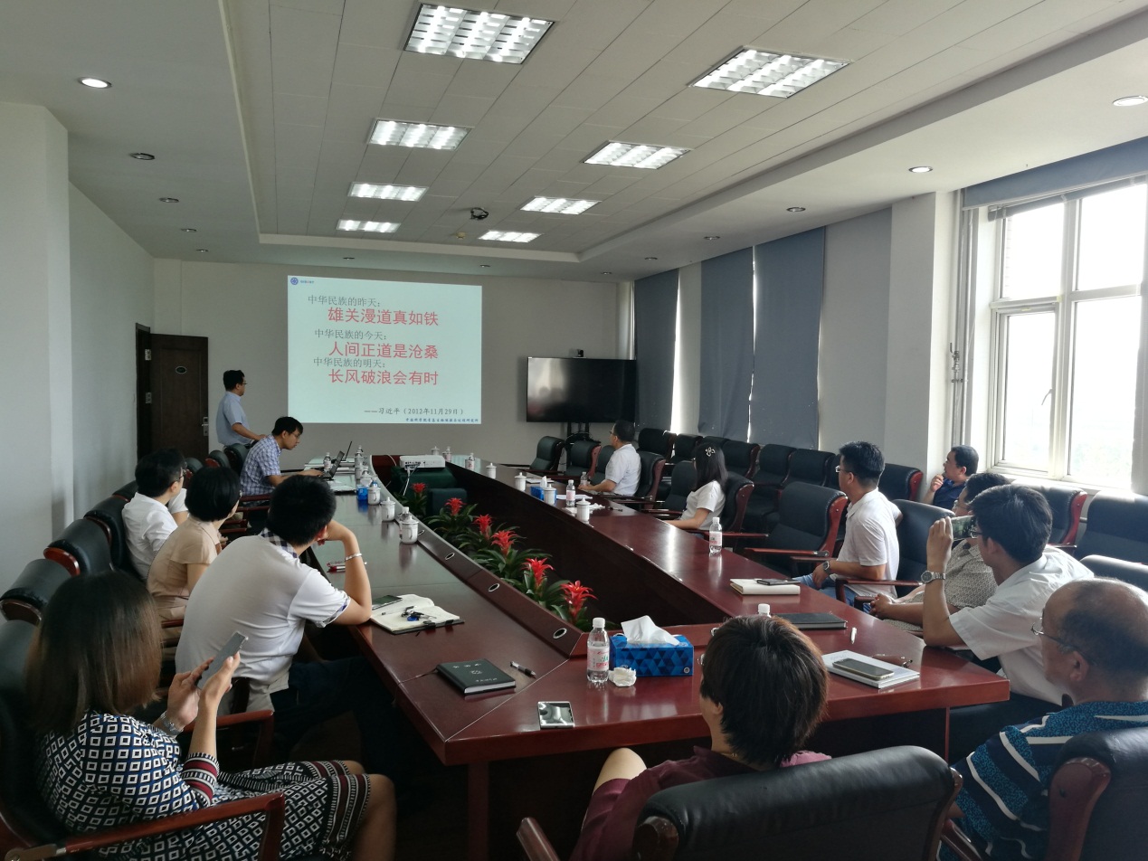 7月11日,研究所管理部門黨支部開展規(guī)范化制度化“兩學(xué)一做”教育第一專題“深入學(xué)黨章黨規(guī)”主題黨日活動。會前支部組織全體黨員自學(xué)了黨委辦公室統(tǒng)一印發(fā)的《深入學(xué)黨章黨規(guī)研討材料》。黨支部書記張瑞東同志做了題為《回顧歷史,不忘初心—讀史淺得》的報告,向支部全體黨員分享了自己讀《苦難的輝煌》、《浴血榮光》兩部書籍的心得,從近代中國的救亡圖存運(yùn)動、黨對中國道路的艱難探索、特色社會主義道路的確立三個方面,講述了中國共產(chǎn)黨從小到大、由弱到強(qiáng)的歷史,通過對歷史的共同學(xué)習(xí)加強(qiáng)對黨章和黨規(guī)的理解。