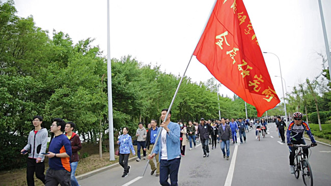在金屬所旗幟的引領(lǐng)下,在熱烈而溫馨的氣氛中,浩浩蕩蕩的隊伍宛如一條長龍,蜿蜒盤繞在美麗的沈水河畔。在金戈鐵馬的秦開塑像前和北門轉(zhuǎn)盤處,大家自發(fā)聚集在金屬所旗幟下合影留念。五公里的健步走活動,大家有說有笑,談一談工作,聊一聊生活,在歡樂的氣氛里增強了交流、增進了感情。