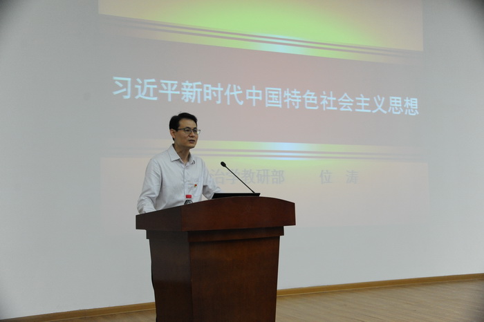 位濤副教授的報(bào)告分為習(xí)近平新時(shí)代中國(guó)特色社會(huì)主義思想產(chǎn)生的歷史背景、習(xí)近平新時(shí)代中國(guó)特色社會(huì)主義思想的主要內(nèi)容、習(xí)近平新時(shí)代中國(guó)特色社會(huì)主義思想的堅(jiān)持和發(fā)展等三個(gè)部分。在講述習(xí)近平新時(shí)代中國(guó)特色社會(huì)主義思想產(chǎn)生的歷史背景時(shí),位濤介紹了習(xí)近平新時(shí)代中國(guó)特色社會(huì)主義思想的形成和發(fā)展,以及世界大發(fā)展大變革的國(guó)際環(huán)境。在闡述習(xí)近平新時(shí)代中國(guó)特色社會(huì)主義思想的主要內(nèi)容時(shí),他分別從宏觀、中觀、微觀等角度剖析了習(xí)近平新時(shí)代中國(guó)特色社會(huì)主義思想的內(nèi)涵,明確了習(xí)近平新時(shí)代中國(guó)特色社會(huì)主義思想的根本宗旨,習(xí)近平新發(fā)展理念的涵義,解讀了中國(guó)夢(mèng)的內(nèi)涵外延,以及“五位一體”總體布局、“四個(gè)全面”戰(zhàn)略布局、“十四個(gè)堅(jiān)持”基本方略等重要內(nèi)容。最后,位濤副教授論述了如何堅(jiān)持和發(fā)展習(xí)近平新時(shí)代中國(guó)特色社會(huì)主義思想,此外他還分享了自己學(xué)習(xí)和研究習(xí)近平新時(shí)代中國(guó)特色社會(huì)主義思想的收獲和感悟。