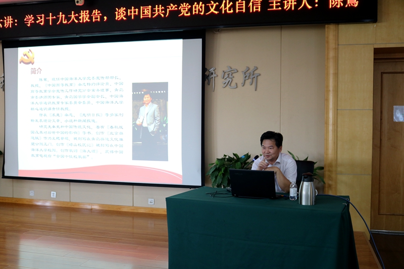 9月26日下午,中國海洋大學(xué)黨委宣傳部部長陳鷟教授應(yīng)邀再次作客中國科學(xué)院青島生物能源與過程研究所“清源聚能”文化論壇,做了題為“學(xué)習(xí)十九大報告,談中國共產(chǎn)黨的文化自信”的精彩報告。研究所全體黨員、入黨積極分子共200余人到場聆聽了報告。 陳鷟深入闡釋了十九大報告中文化自信的豐富內(nèi)涵,從中國共產(chǎn)黨的文化根基、中國歷史和傳統(tǒng)文化等方面分析了“堅定文化自信 弘揚(yáng)傳統(tǒng)文化”的現(xiàn)實意義和重要性。