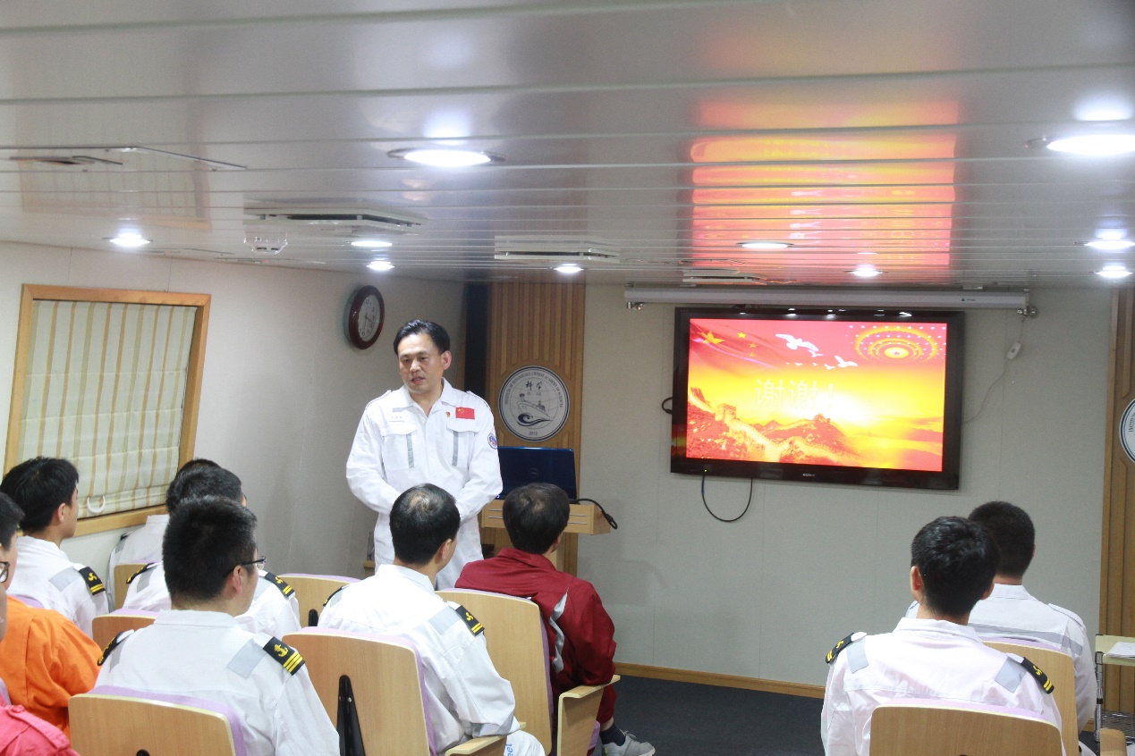 針對(duì)“海上堡壘”臨時(shí)黨支部成員大多來自一線技術(shù)崗位的特點(diǎn),為集中系統(tǒng)學(xué)習(xí)黨的理論知識(shí),切實(shí)提升一線黨員的理論水平和思想政治覺悟,姜良優(yōu)同志以“從‘兩學(xué)一做’重溫黨的理論知識(shí)”為題作專題黨課,介紹了黨中央、院黨組及所黨委開展“兩學(xué)一做”學(xué)習(xí)教育常態(tài)化制度化的總體要求以及實(shí)施方案,從黨章的基本架構(gòu)、黨章對(duì)基層黨組織建設(shè)要求、黨的組織生活制度等方面系統(tǒng)介紹了黨章內(nèi)容,重溫了習(xí)近平總書記關(guān)于海洋強(qiáng)國(guó)建設(shè)的系列講話精神及視察中國(guó)科學(xué)院批示指示精神,號(hào)召全體黨員按照“三個(gè)面向”、“四個(gè)率先”要求,立足崗位建功立業(yè),努力提升技術(shù)保障水平,助力海洋科考事業(yè)發(fā)展。