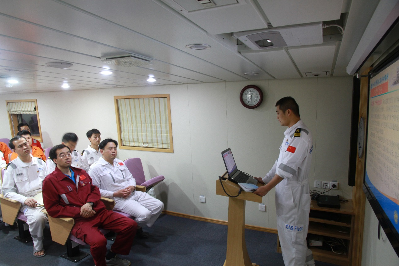 4月9日,正在西太平洋執(zhí)行科考任務(wù)的“科學(xué)”號(hào)“海上堡壘”臨時(shí)黨支部開展“加強(qiáng)理論提升 做合格黨員”主題黨日活動(dòng),重溫黨的理論知識(shí),并共同觀看紀(jì)念毛漢禮先生百年誕辰記錄片。黨支部14名黨員及3名入黨積極分子參加活動(dòng),黨委委員、臨時(shí)黨支部書記李雷溪同志主持活動(dòng)。