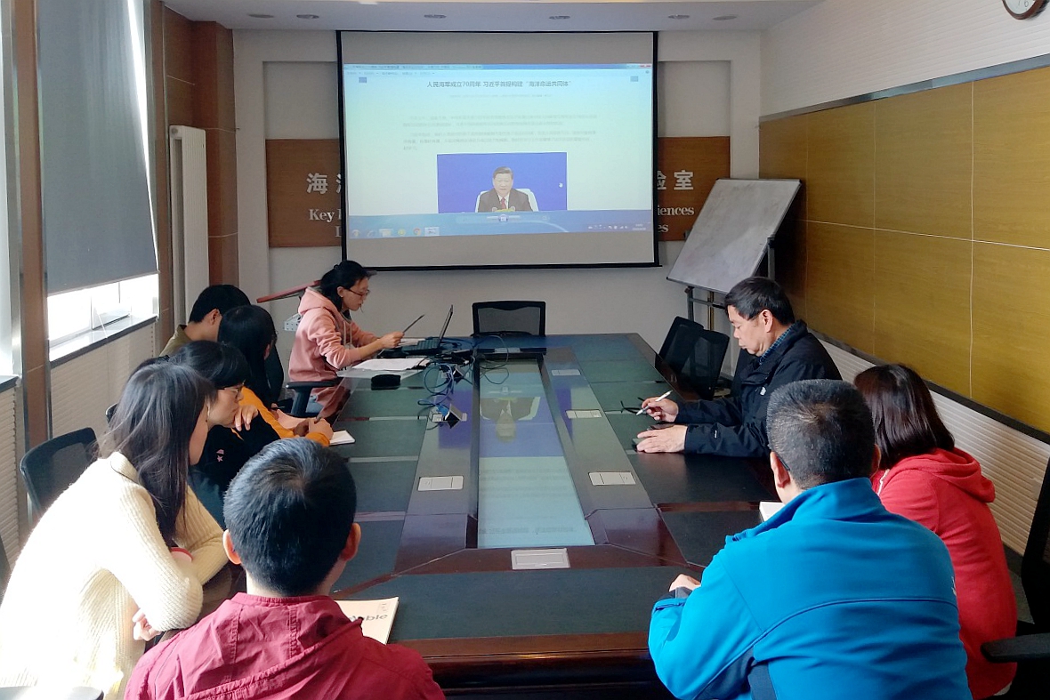 習(xí)近平總書記在人民海軍建軍70周年紀(jì)念活動(dòng)上首次提出構(gòu)建“海洋命運(yùn)共同體”,為深入學(xué)習(xí)總書記的講話精神,踐行新思想,做出新成就,4月25日至26日,生態(tài)黨支部以黨小組為單位分別開展學(xué)習(xí)活動(dòng)。