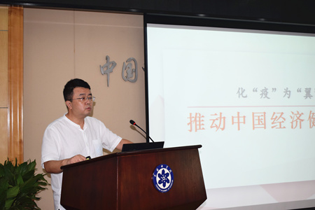 會(huì)議邀請(qǐng)青島能源所黨委書(shū)記彭輝做了《化“疫”為“翼”——推動(dòng)中國(guó)經(jīng)濟(jì)健康向好》專題黨課。他指出一場(chǎng)突如其來(lái)的疫情將全世界卷入其中,經(jīng)過(guò)黨領(lǐng)導(dǎo)人民數(shù)月的團(tuán)結(jié)奮戰(zhàn),我們已經(jīng)取得了疫情防控的階段性巨大勝利。在疫情得到有效控制的基礎(chǔ)上,如何盡快推動(dòng)經(jīng)濟(jì)復(fù)蘇成為當(dāng)下工作的重點(diǎn)。科學(xué)技術(shù)發(fā)展是現(xiàn)代社會(huì)生產(chǎn)及經(jīng)濟(jì)發(fā)展的主要推動(dòng)力和增長(zhǎng)點(diǎn)所在,作為引領(lǐng)科技發(fā)展的科學(xué)院的一員,要發(fā)揮黨支部的戰(zhàn)斗堡壘作用,圍繞中心服務(wù)大局,推進(jìn)科技創(chuàng)新引領(lǐng)產(chǎn)業(yè)發(fā)展,為社會(huì)經(jīng)濟(jì)發(fā)展作出貢獻(xiàn)。