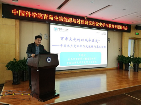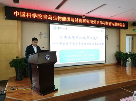 4月27日下午,青島能源所召開黨史學習教育專題報告會。研究所全體黨員、申請入黨人員、共青團員和感興趣的職工、學生共300余人在現(xiàn)場或通過視頻形式參加了會議。會議由紀委書記李明主持。