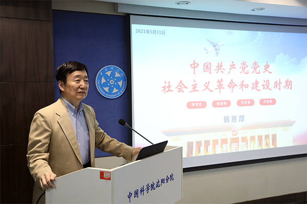 學習會上,韓恩厚作社會主義革命和建設時期黨史學習專題報告,通過歷史時間軸系統(tǒng)梳理了新中國成立、鞏固政權、過渡時期、社會主義探索、文革時期、真理大討論六個重要歷史時期,同時從歷史的角度分析了中國共產(chǎn)黨執(zhí)政帶來的啟示。韓恩厚在報告中強調(diào)了黨對科技事業(yè)領導的重視,結(jié)合社會主義革命和建設時期的黨史闡釋了科技事業(yè)在這一階段的發(fā)展。