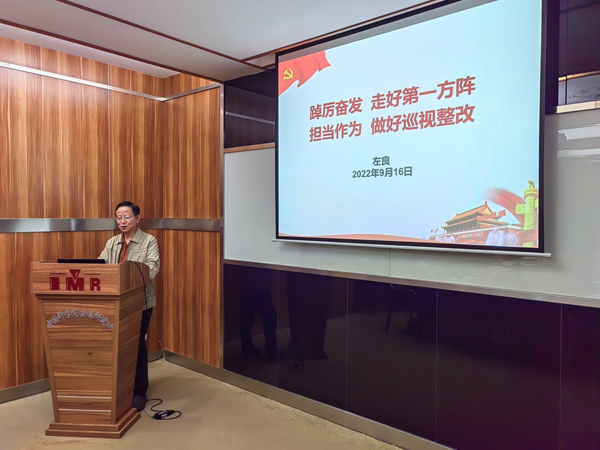 隨后,左良作了題為“踔厲奮發(fā),走好第一方陣;擔(dān)當(dāng)作為,做好巡視整改”的黨課報(bào)告。報(bào)告首先回顧了習(xí)近平總書(shū)記在2022年春季學(xué)期中青年干部培訓(xùn)班上的重要講話(huà)精神,以及中國(guó)科學(xué)院院長(zhǎng)侯建國(guó)在中國(guó)科學(xué)院慶祝中國(guó)共產(chǎn)黨成立101周年表彰大會(huì)上關(guān)于走好第一方陣、自覺(jué)履行使命擔(dān)當(dāng)?shù)囊?。左良指出,所班子要認(rèn)真學(xué)習(xí)貫徹習(xí)近平總書(shū)記系列重要講話(huà)精神,貫徹落實(shí)院黨組各項(xiàng)要求,以巡視“回頭看”整改落實(shí)為契機(jī),從講政治的高度對(duì)巡視發(fā)現(xiàn)的問(wèn)題,深入剖析問(wèn)題原因、制定整改舉措,明確具體責(zé)任人和時(shí)間節(jié)點(diǎn),狠抓落實(shí)。左良強(qiáng)調(diào),在整改過(guò)程中要堅(jiān)持以群眾滿(mǎn)意為出發(fā)點(diǎn)和落腳點(diǎn),主動(dòng)聽(tīng)取廣大科研人員的意見(jiàn),進(jìn)一步加強(qiáng)研究所治理體系和治理能力建設(shè),真正將巡視整改轉(zhuǎn)化為推動(dòng)研究所改革創(chuàng)新發(fā)展的源動(dòng)力,營(yíng)造有利于重大科研成果產(chǎn)出的創(chuàng)新環(huán)境,以?xún)?yōu)異成績(jī)迎接黨的二十大勝利召開(kāi)。
