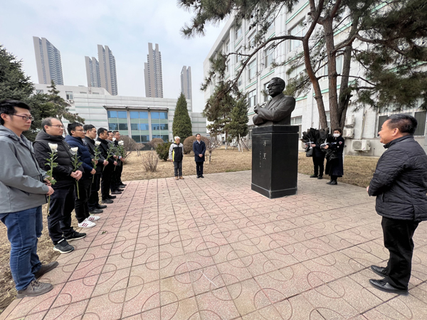 紀(jì)念活動(dòng)中,徐巖帶領(lǐng)青年職工擦拭了李薰先生的塑像,徐巖和王崇琳為李薰先生塑像敬獻(xiàn)了花籃,青年科研人員和職能部門(mén)代表向塑像敬獻(xiàn)了菊花,大家一起向李薰先生塑像三鞠躬表達(dá)對(duì)李薰先生的懷念和崇敬。