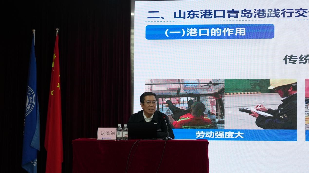 在海洋所培訓(xùn)期間邀請了中共二十大代表、“連鋼創(chuàng)新團(tuán)隊(duì)”負(fù)責(zé)人、山東省港口集團(tuán)有限公司高級別專家張連鋼同志做黨的二十大精神宣講報(bào)告。張連鋼結(jié)合自己參加二十大會議的體會以及“連鋼創(chuàng)新團(tuán)隊(duì)”建設(shè)亞洲首個(gè)全自動化集裝箱碼頭的實(shí)踐與創(chuàng)新,從“深刻領(lǐng)會黨的二十大精神實(shí)質(zhì)、準(zhǔn)確把握重大理論和實(shí)踐問題”“中國式現(xiàn)代化在港口的具體實(shí)踐”“推進(jìn)中國式現(xiàn)代化必須要堅(jiān)定不移走好自主創(chuàng)新之路”三個(gè)方面對黨的二十大精神進(jìn)行了解讀。