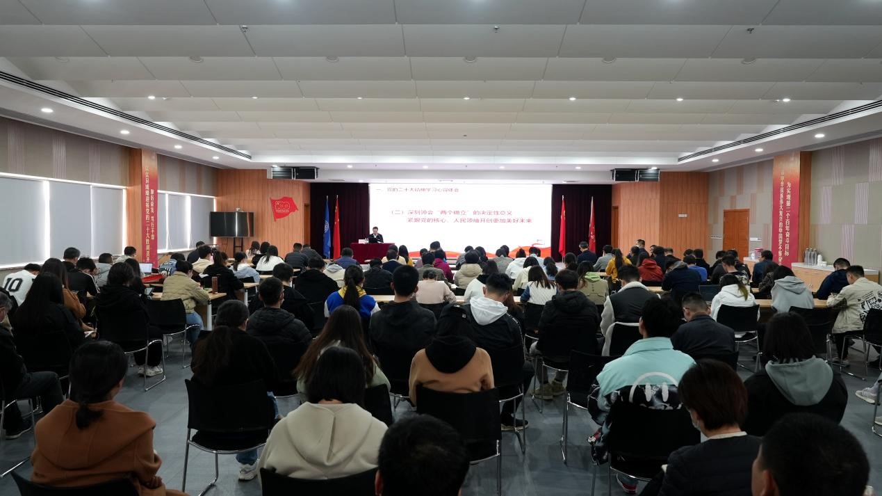 黨委副書記、紀(jì)委書記畢偉以“學(xué)習(xí)貫徹黨的二十大精神,推進(jìn)全面從嚴(yán)治黨”為題作報(bào)告,從堅(jiān)持加強(qiáng)黨中央集中統(tǒng)一領(lǐng)導(dǎo)、堅(jiān)持不懈用習(xí)近平新時(shí)代中國特色社會主義思想凝心聚魂、完善黨的自我革命制度規(guī)范體系、建設(shè)堪當(dāng)民族復(fù)興重任的高素質(zhì)干部隊(duì)伍、增強(qiáng)黨的政治功能和組織功能、堅(jiān)持嚴(yán)的基調(diào)強(qiáng)化正風(fēng)肅紀(jì)等七個(gè)方面對黨的二十大提出的健全全面從嚴(yán)治黨體系進(jìn)行了詳細(xì)解讀。