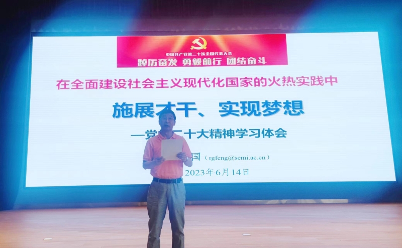 6月14日,沈陽生態(tài)所組織召開主題教育學(xué)習(xí)報告會,會議邀請了中國科學(xué)院半導(dǎo)體研究所黨委書記、副所長馮仁國研究所員作 “在全面建設(shè)社會主義現(xiàn)代化國家的火熱實(shí)踐中施展才干、實(shí)現(xiàn)夢想——黨的二十大精神學(xué)習(xí)體會”主題報告。黨委委員、紀(jì)委委員、中層干部、黨支部委員、科研骨干、青年職工、全體研究生180余人參加報告會。報告會由黨委書記金昌杰主持。