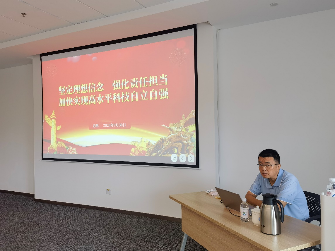 彭輝做《堅(jiān)定理想信念 強(qiáng)化責(zé)任擔(dān)當(dāng) 加快實(shí)現(xiàn)高水平科技自立自強(qiáng)》專題黨課報(bào)告,從“中國共產(chǎn)黨的百年光輝歷程、中國科學(xué)院的創(chuàng)新發(fā)展之路、新征程上奮力實(shí)現(xiàn)高水平科技自立自強(qiáng)、研究所內(nèi)部創(chuàng)新價(jià)值鏈與科技發(fā)展”四個(gè)方面展開了介紹,指出要積極運(yùn)用黨的創(chuàng)新理論,切實(shí)從科技創(chuàng)新需求出發(fā),以促進(jìn)黨中央、院黨組決策部署的貫徹落實(shí)為核心,聚焦加快搶占科技制高點(diǎn)任務(wù),堅(jiān)定理想信念,志存高遠(yuǎn)、腳踏實(shí)地,推動(dòng)科技創(chuàng)新的高質(zhì)量發(fā)展。