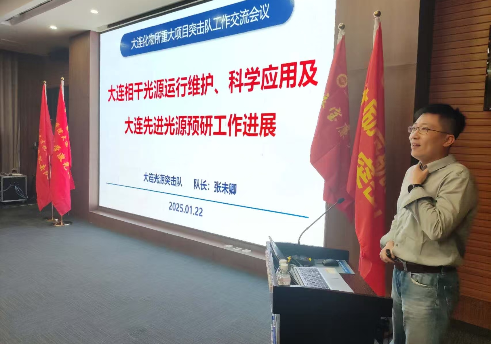 首先,張存浩“化學(xué)激光”突擊隊(duì)隊(duì)長(zhǎng)房本杰研究員、衣寶廉“燃料電池”突擊隊(duì)隊(duì)長(zhǎng)邵志剛研究員、“大連光源”突擊隊(duì)隊(duì)長(zhǎng)張未卿研究員、林勵(lì)吾“航天催化”突擊隊(duì)骨干代表侯寶林研究員分別代表各突擊隊(duì)全面介紹了2024年工作開(kāi)展情況及項(xiàng)目進(jìn)展,分享了在外場(chǎng)艱苦條件下,各突擊隊(duì)隊(duì)員們不畏艱難的試驗(yàn)歷程和協(xié)力攻關(guān)的難忘記憶。