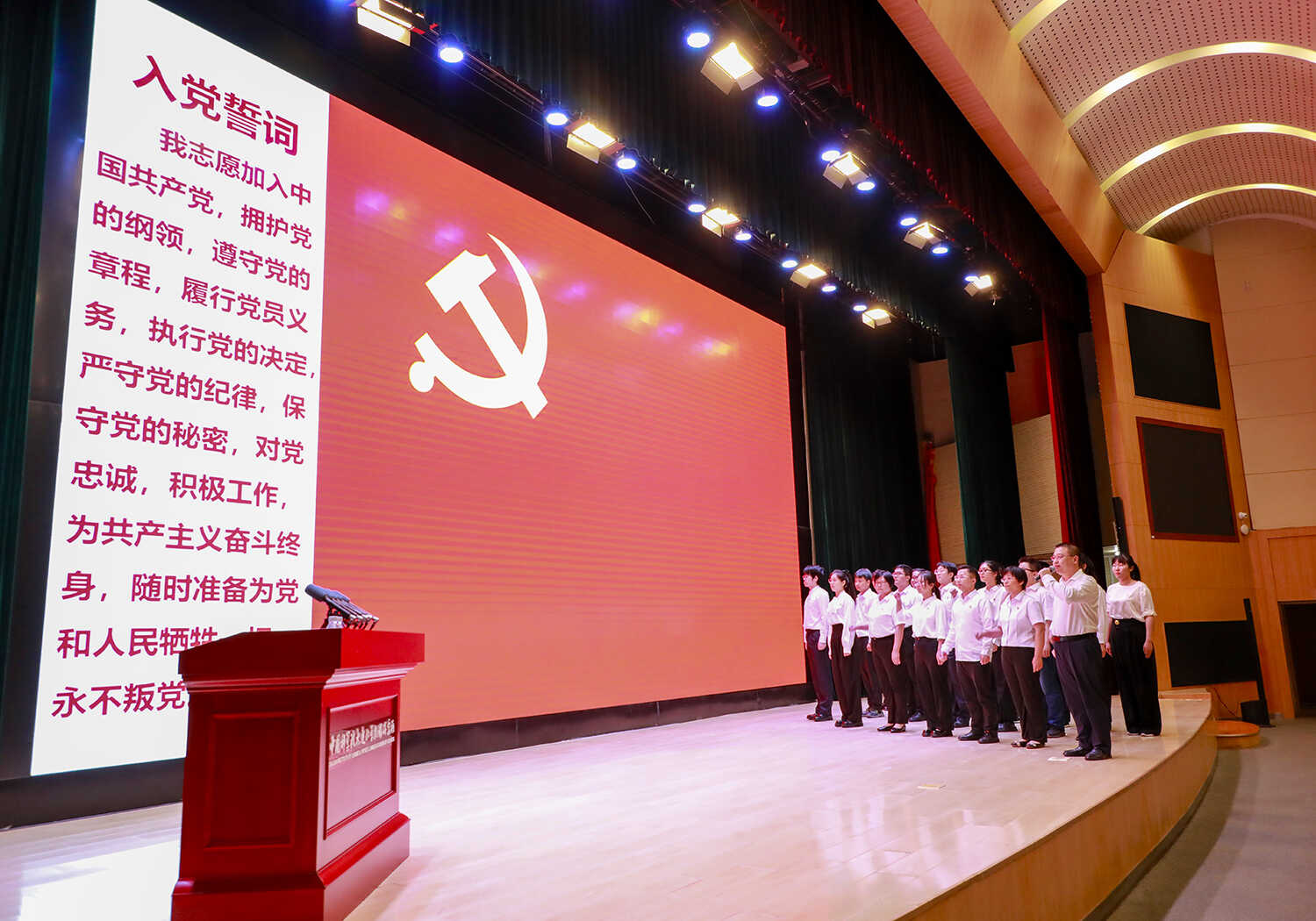 首先,大會進(jìn)行新黨員入黨宣誓儀式,新加入黨組織的預(yù)備黨員在黨委委員王書詔的帶領(lǐng)下,面向黨旗,莊嚴(yán)宣誓。