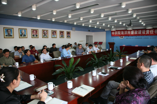 10月12日,中科院海洋所召開(kāi)反腐廉政工作會(huì)議,所長(zhǎng)孫松、黨委書(shū)記王啟堯,副所長(zhǎng)李鐵剛、楊紅生、王輝出席會(huì)議,黨委委員、紀(jì)委委員,以及各研究室\中心正副主任、管理與支撐部門(mén)正副處長(zhǎng)共45人參加了會(huì)議。會(huì)議由黨委副書(shū)記兼紀(jì)委書(shū)記楊紅生主持。