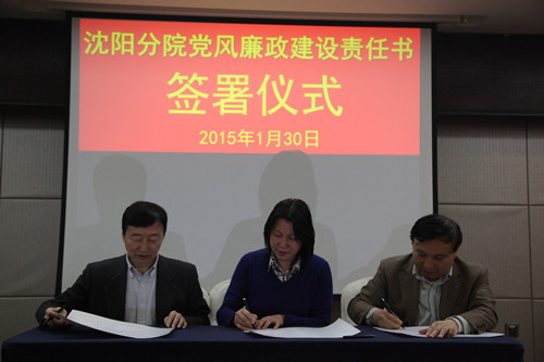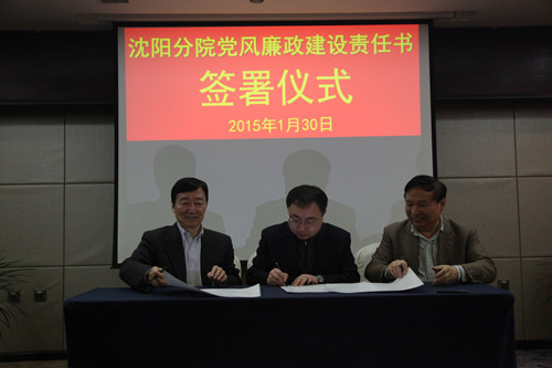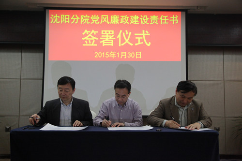 2015年1月30日,沈陽分院組織與系統(tǒng)各研究所簽訂黨風廉政建設責任書。受院黨組委托沈陽分院院長韓恩厚、黨組書記王啟堯與各研究所所長、黨委書記分別簽訂了個性化反腐倡廉建設責任書、黨風廉政建設責任書,同時與分院領(lǐng)導班子其他兩位成員也簽訂了個性化責任書。沈陽分院黨組副書記、紀檢組長徐巖主持責任書簽訂儀式。