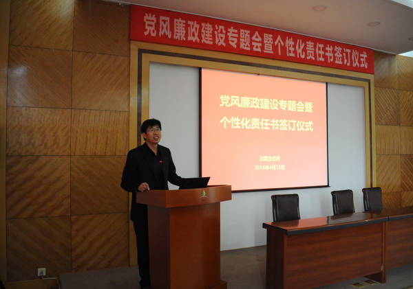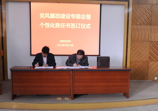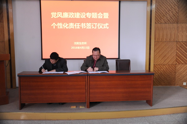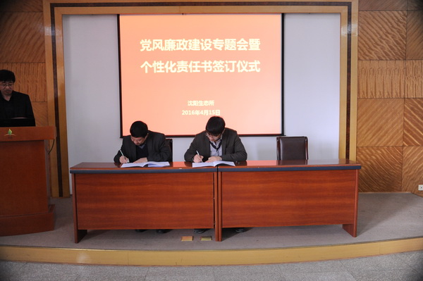 為全面推進(jìn)落實(shí)“兩個(gè)責(zé)任”和“一崗雙責(zé)”,進(jìn)一步加強(qiáng)我所黨風(fēng)廉政建設(shè)和反腐敗工作,4月15日,中國科學(xué)院沈陽應(yīng)用生態(tài)研究所舉行了黨風(fēng)廉政建設(shè)專題會暨個(gè)性化責(zé)任書簽訂儀式,對進(jìn)一步推進(jìn)黨風(fēng)廉政建設(shè)和反腐敗工作進(jìn)行部署。所領(lǐng)導(dǎo)班子成員、黨委委員、紀(jì)委委員、學(xué)科組組長、管理與支撐部門負(fù)責(zé)人、野外臺站站長、控股公司總經(jīng)理及機(jī)關(guān)工作人員等60余人出席會議。會議由沈陽生態(tài)所副所長、黨委副書記、紀(jì)委書記郭秀銀主持。