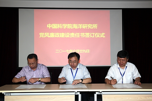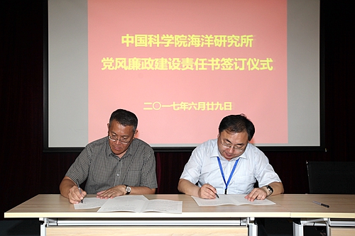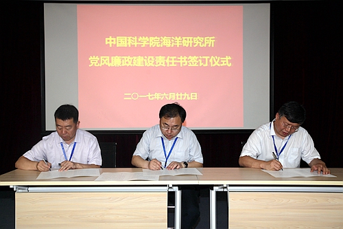 根據(jù)《中國科學(xué)院海洋研究所黨風(fēng)廉政建設(shè)責(zé)任制實施細則》規(guī)定,黨風(fēng)廉政建設(shè)責(zé)任書實施逐級簽訂,體現(xiàn)個性化崗位責(zé)任,管理與支撐部門負責(zé)人、研究室/中心負責(zé)人、研究組負責(zé)人均需與分管所領(lǐng)導(dǎo)簽訂《黨風(fēng)廉政建設(shè)責(zé)任書》或《反腐倡廉建設(shè)責(zé)任書》;管理與支撐部門人員和研究組人員也需與部門負責(zé)人簽訂《廉潔從業(yè)承諾書》。此項工作將由監(jiān)審處負責(zé)在近期內(nèi)完成。