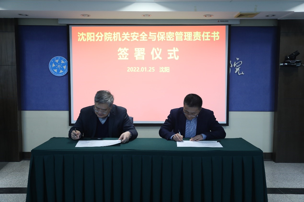 1月25日,為貫徹落實黨中央關(guān)于全面從嚴(yán)治黨的部署要求,按照《中國科學(xué)院黨風(fēng)廉政建設(shè)責(zé)任制實施辦法》相關(guān)規(guī)定,沈陽分院組織相關(guān)人員簽訂《黨風(fēng)廉政建設(shè)責(zé)任書》。同時為牢固樹立總體國家安全觀,踐行安全發(fā)展理念,依據(jù)《中國科學(xué)院安全與保密工作責(zé)任制規(guī)定(試行)》的相關(guān)要求,沈陽分院組織相關(guān)人員簽訂《2022年安全與保密管理責(zé)任書》。沈陽分院分黨組書記、院長于海斌,分黨組副書記毛志遠(yuǎn),紀(jì)檢組組長、分黨組成員楊宏以及機關(guān)各部門負(fù)責(zé)人參加簽訂儀式,簽訂儀式由楊宏主持。