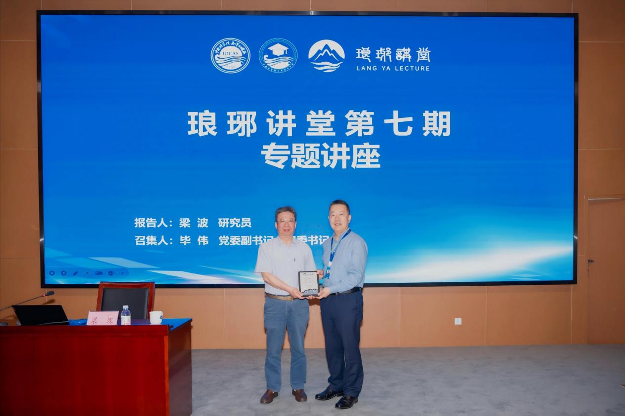 會議期間,黨委副書記、紀(jì)委書記畢偉為梁波研究員頒發(fā)了“瑯琊講堂”紀(jì)念牌。