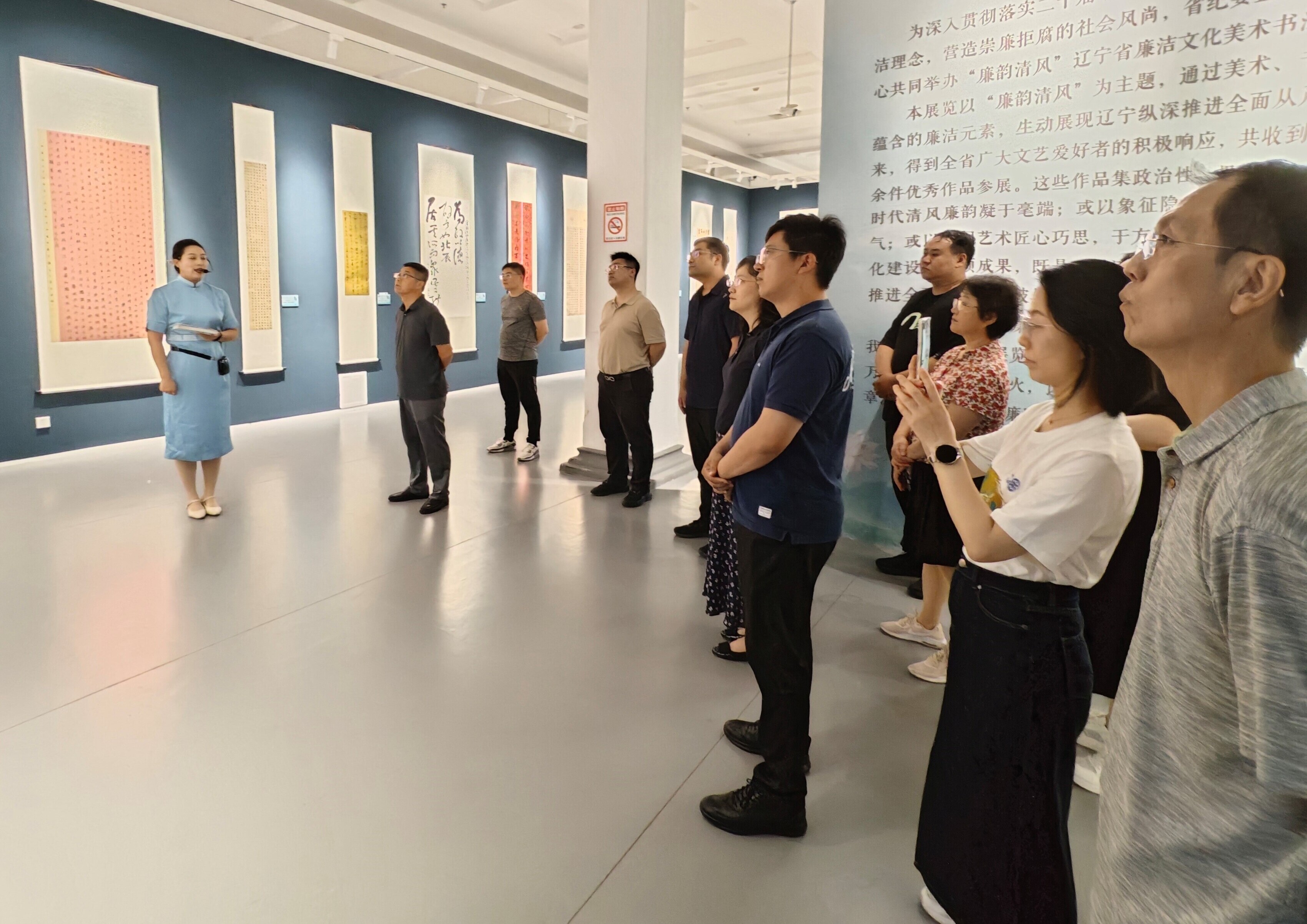為認真貫徹落實二十屆中央紀委四次全會精神,扎實開展深入貫徹中央八項規(guī)定精神學習教育,加強機關廉潔文化建設,提升職工廉潔自律意識,7月4日下午,沈陽分院紀檢組組長、分黨組成員李明及分院近20名干部職工參觀“廉韻清風”遼寧省廉潔文化美術書法攝影民間文藝作品展。
