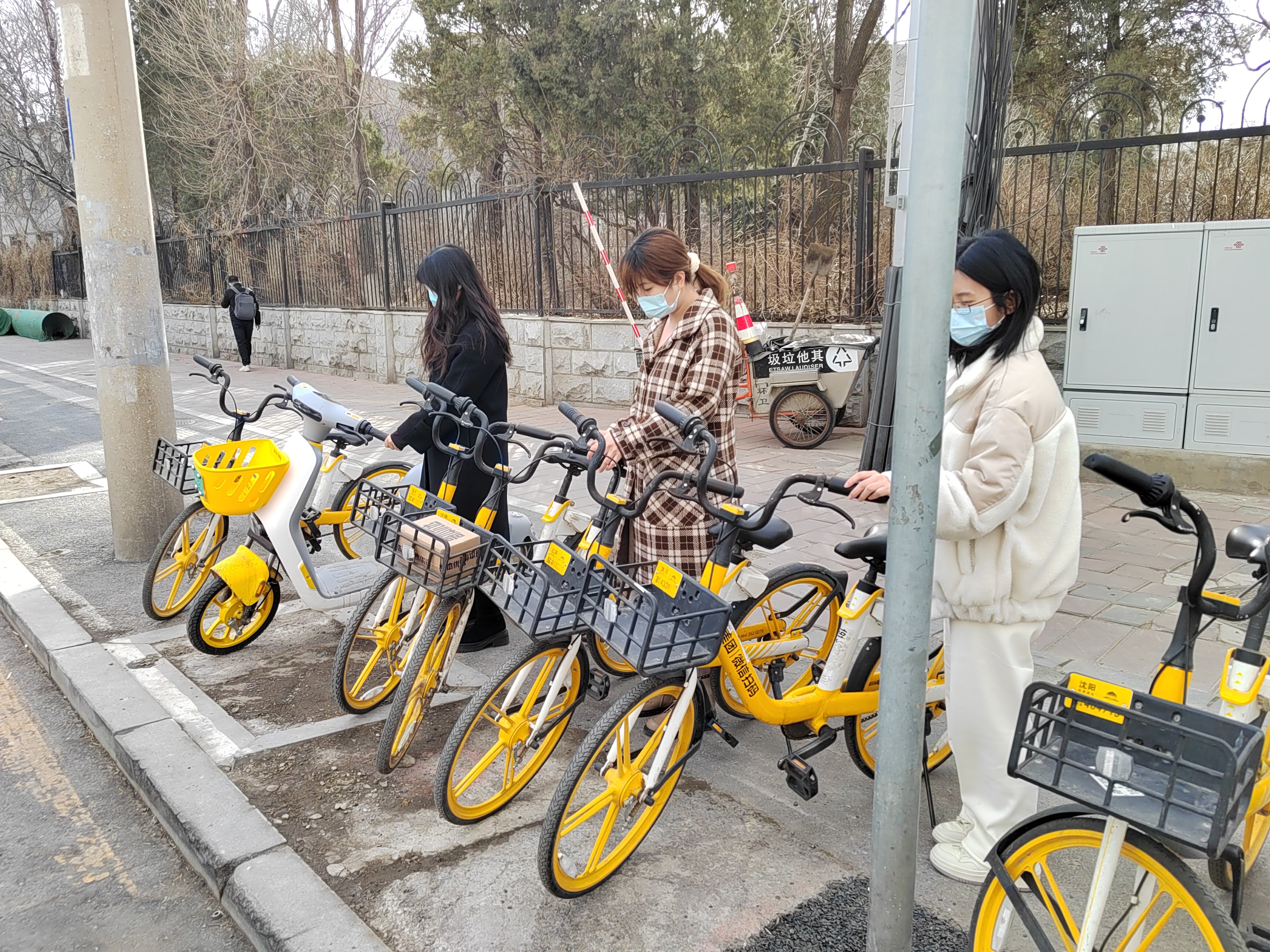 志愿者擺放共享單車